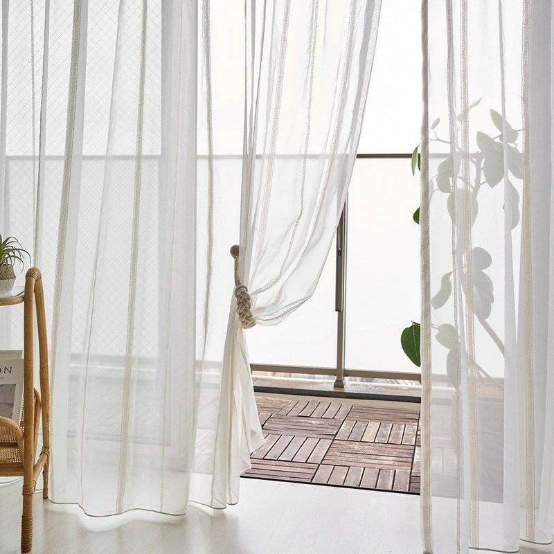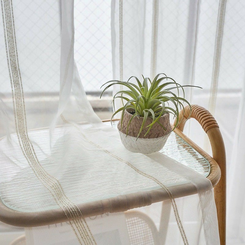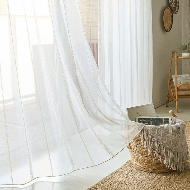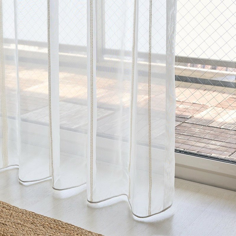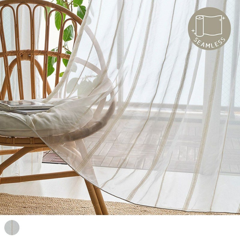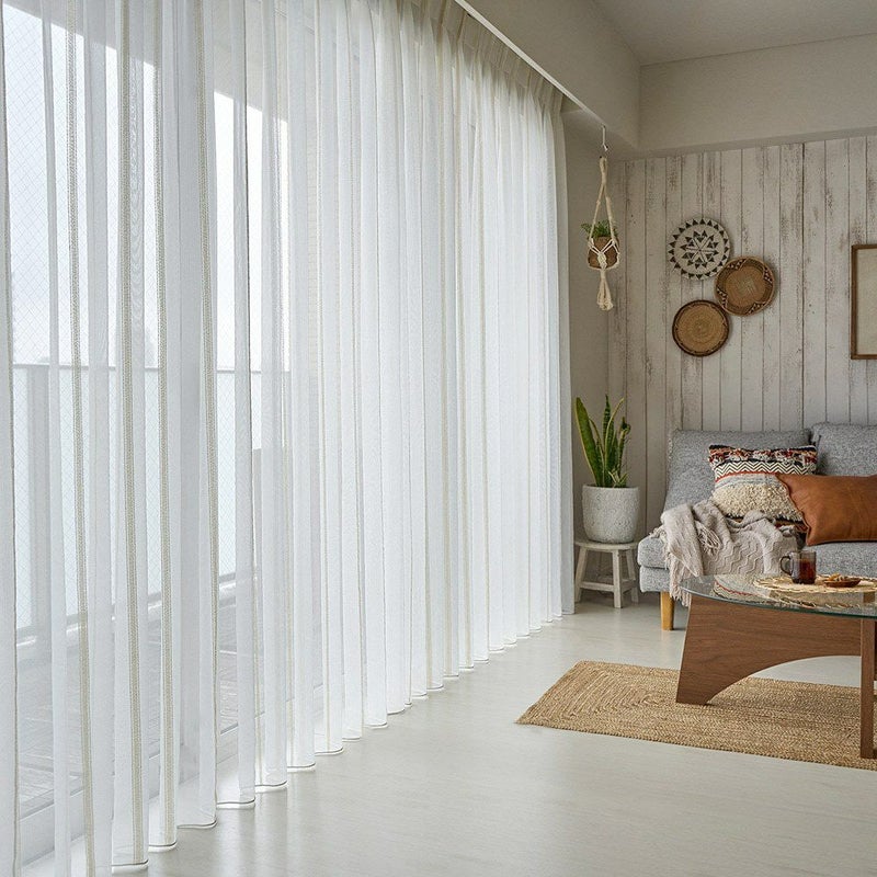 やわらかなストライプが風に揺れる、自然体で心地よいナチュラルレースカーテン。光をやさしく取り込みながら、ふんわりとした陰影が部屋いっぱいに広がります。ナチュラルなBOHOスタイルとも相性抜群で、ほっと一息つけるリラックス空間を作り出します。飾りすぎないシンプルなデザインだからこそ、季節やインテリアに自然になじみ、お部屋にやさしい個性を添えてくれます。