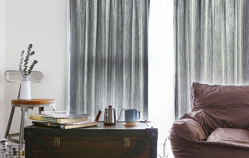 グレーカラーのストライプカーテンは