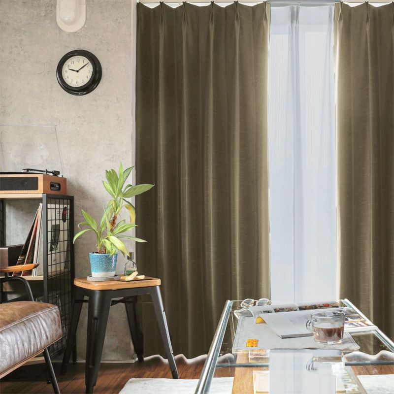 生地に耐久性と遮光性をプラスする特殊加工を施しています。この加工により、カーテンは長持ちし、外の光や視線を効果的に遮ることができます。