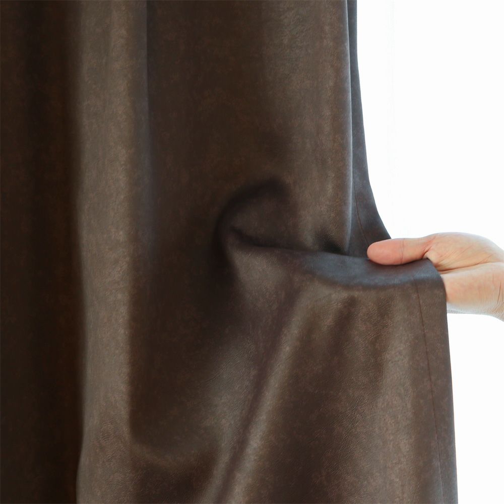 クラフト調で温かみと重厚感を彷彿とさせるレザー調カーテン「ウィーン」。レザー調に特殊なエンボス加工をした生地は、まるで本物同然の表情。リアルなシボ感と品のあるツヤが、インダストリアルテイストで無骨な雰囲気を感じさせます。