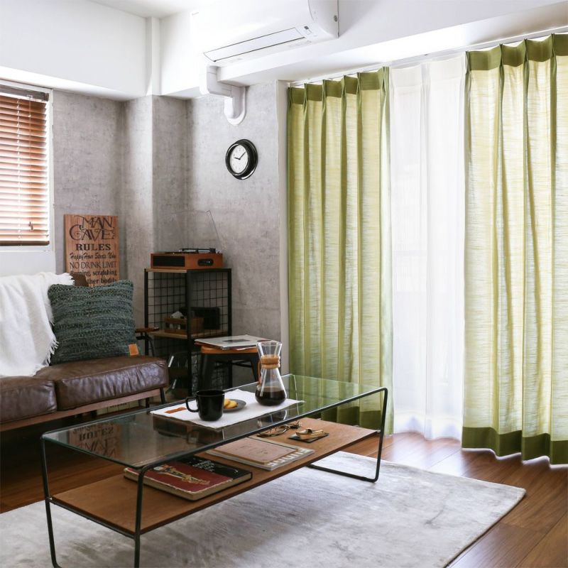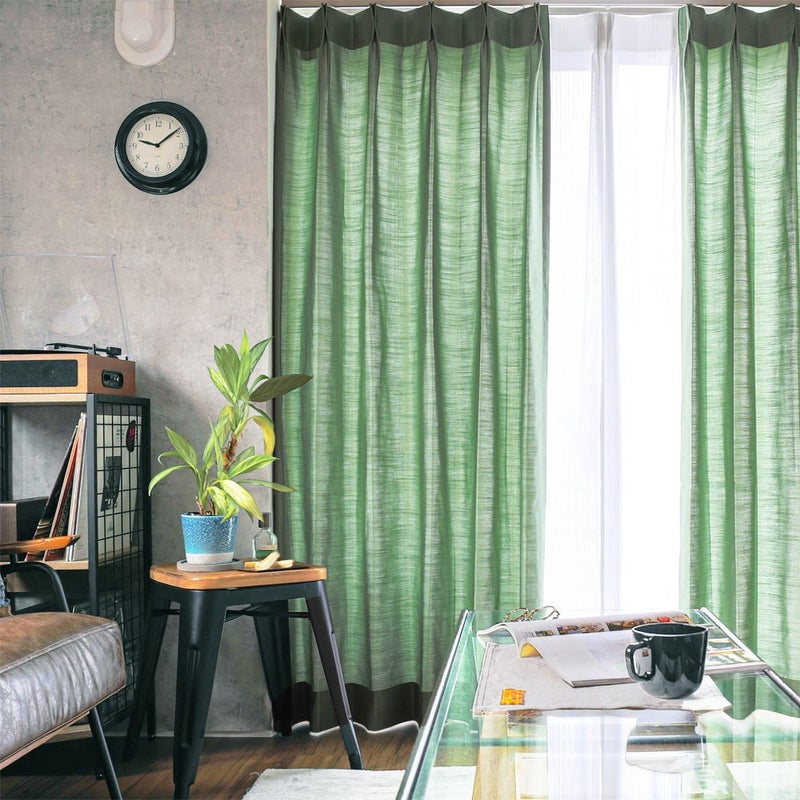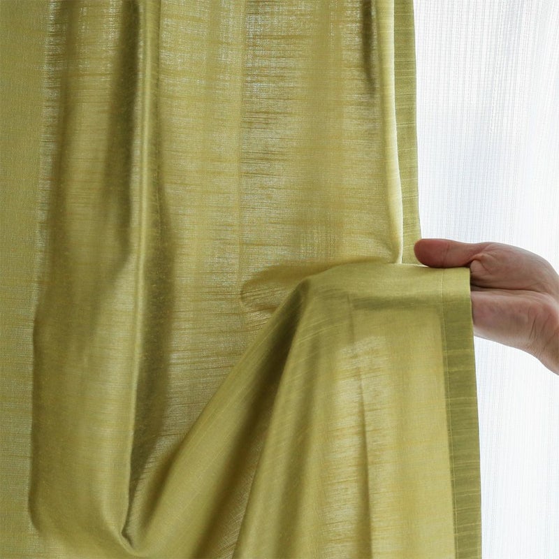 高密度に織り上げた無地のカーテン。ナチュラルな表情の中に、程よい光沢が見え隠れする生地に仕上げています。スタイリッシュなイエローグリーンは、リビングを開放的で明るいムードにしてくれる、おすすめのカラーカーテンです。