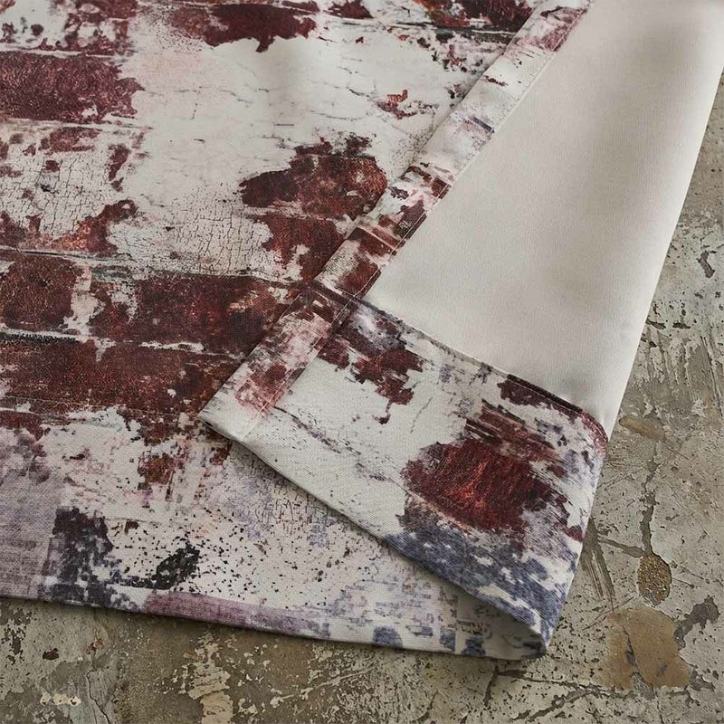 一面にレンガが広がる柄でありながら、このカーテンが重く見えないのは、2級遮光と連動したディテール設計にある。 完全遮光ではないからこそ、生地の奥に光が透ける。 レンガ柄の上に、わずかな明るさと空気が重なり、実体のある壁にはない“抜け”が生まれる。 「壁みたいなのに、空間は閉じない」 圧迫感を抑える設計がなされている。