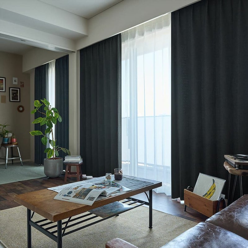 ダークトーンのカーテンで洗練されたかっこいい空間
