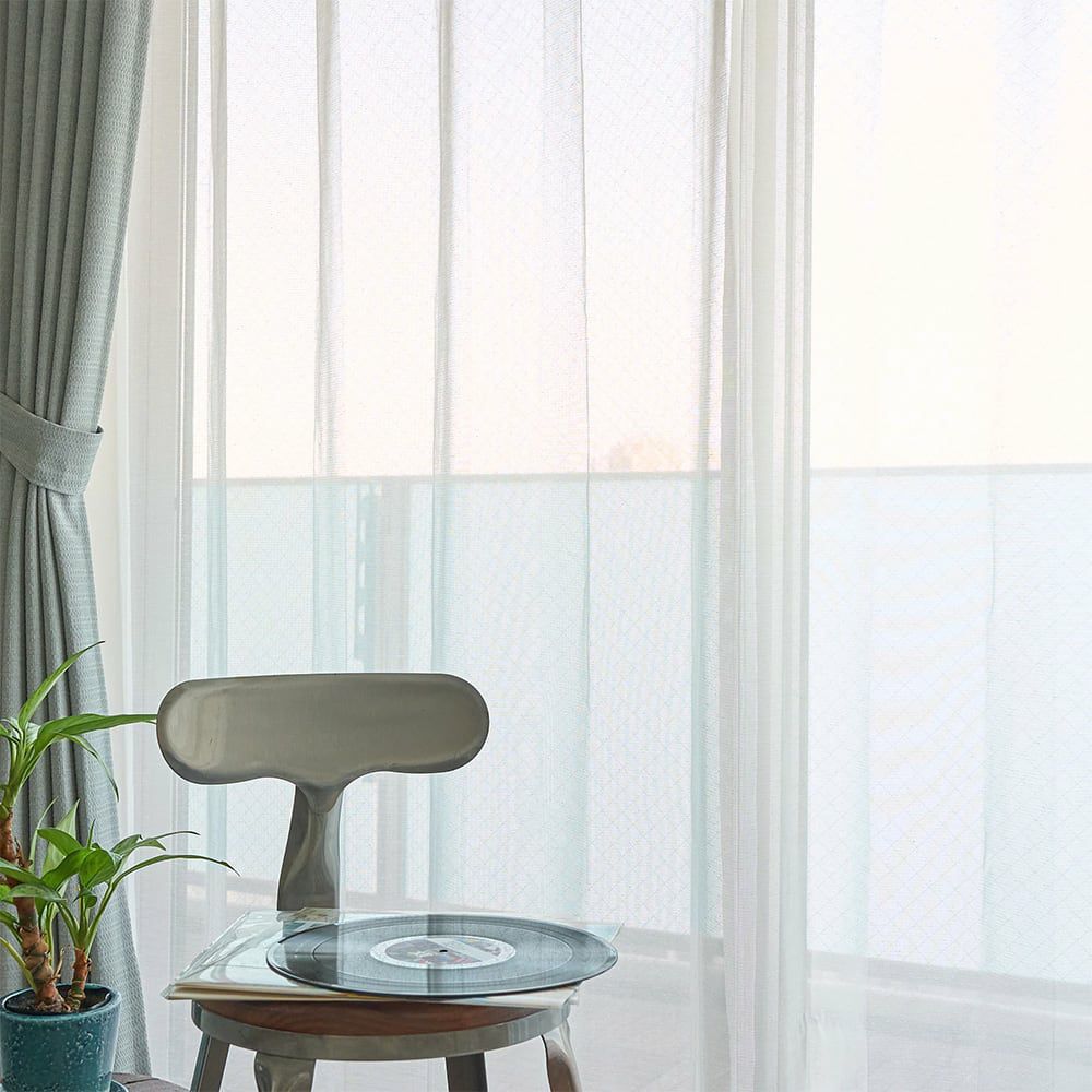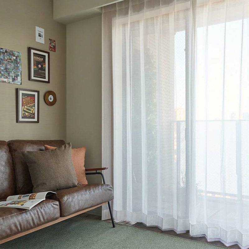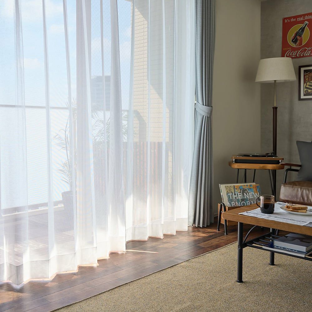 レースカーテンをかけながらも、室内から外の景色が鮮明に映り、圧迫感のない開放的な窓辺を演出します。明るい光が広がる部屋で、外の景色をゆったり楽しんで。