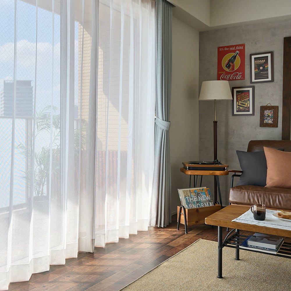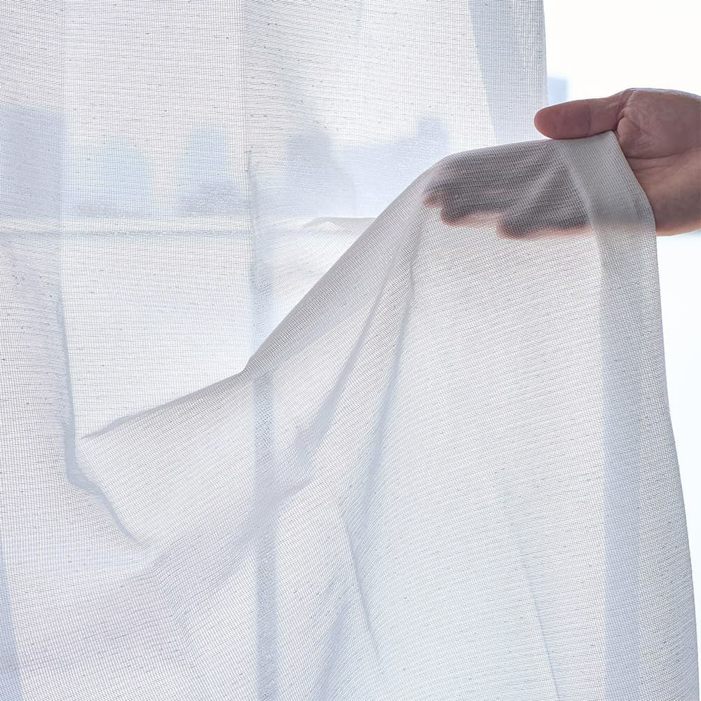 ナチュラルで軽やかな風合い感が抜群なレースカーテンだからこそ、自然な落ち感のあるシルエットが叶います。個性のある質感と真っ直ぐ伸びる縦のシルエットで、あなたらしいスタイリッシュな窓辺を。