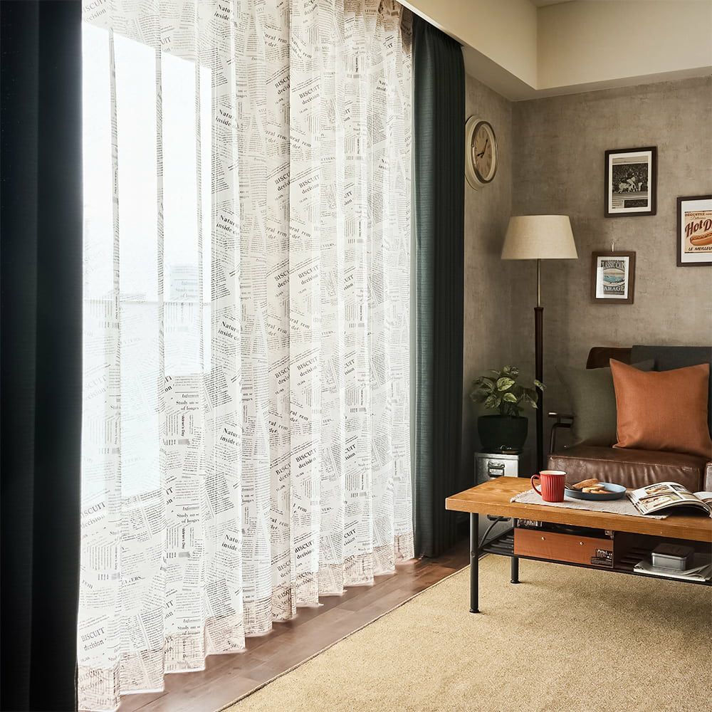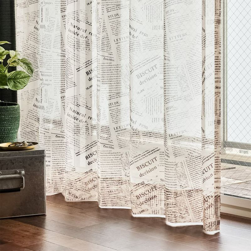 ニュースペーパー風の温かみを感じるタイポグラフィ調のレースカーテン「リブロ」。古典的な文字パターンが特徴で、まるで新聞のようなどこか懐かしいデザインです。穏やかなひとときを届けてくれる、温もりのあるレースカーテンであなただけの特別な空間を演出しませんか?