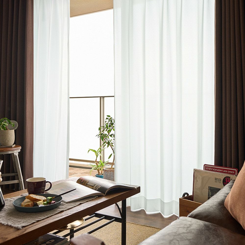 粗削りな織り柄でワイルドな雰囲気を纏った、力強さを感じるレースカーテン「キングス」。無骨な凹凸感が、インダストリアルな美しさを一層際立たせ、洗練された印象を演出。デザイン性の高さだけでなく、「遮像」「UVカット」「断熱・保温」の機能を兼ね備えた、機能的なレースカーテンだ。