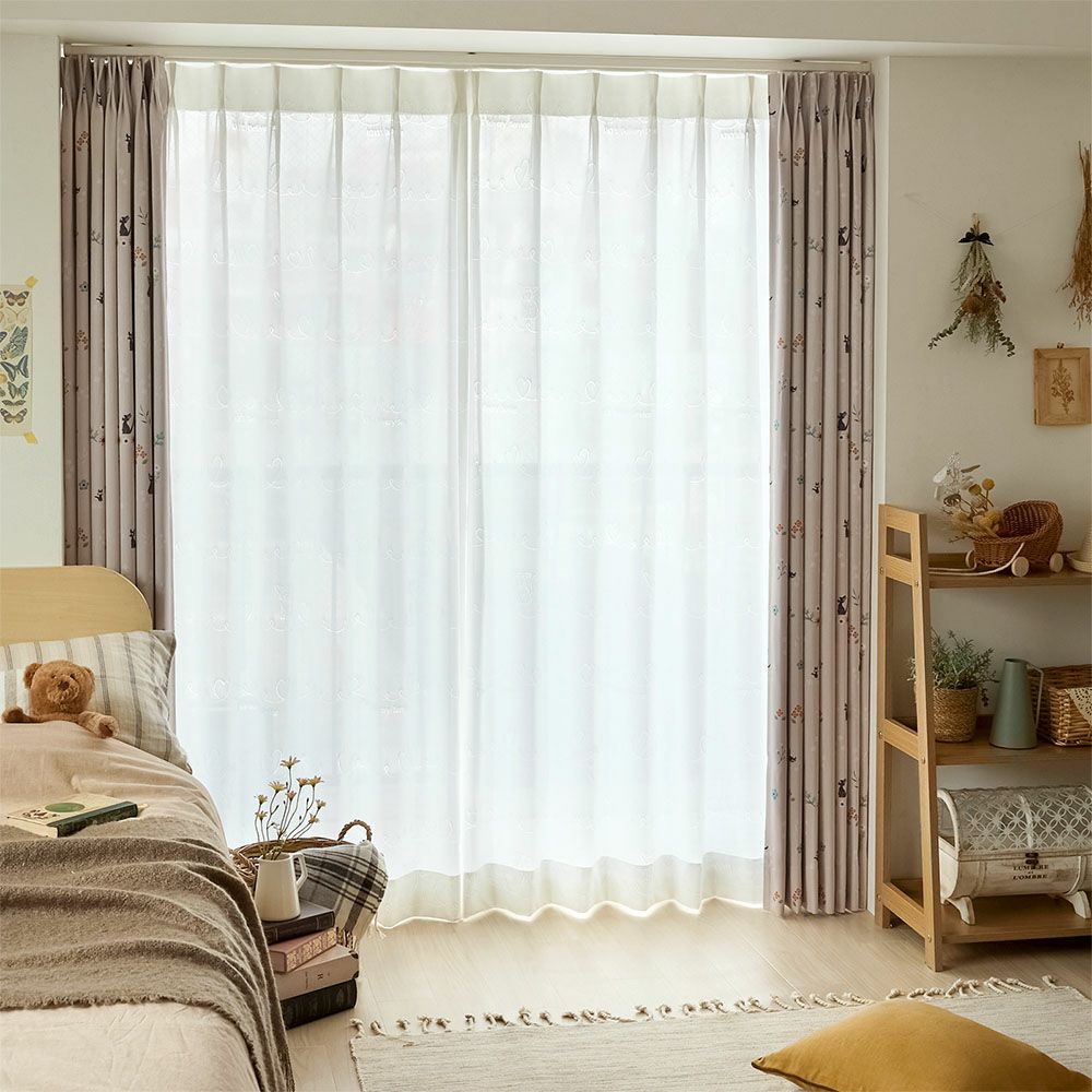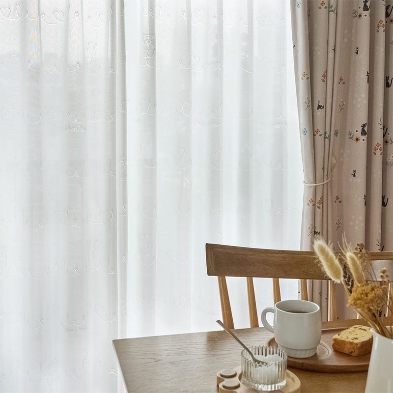窓辺を見つめれば、いつでもジジたちがあなたのそばに♪カーテンに描かれたハートとジジにときめく、あなただけの素敵な時間を。オーダーカーテンならではの特別感で、日常に癒しと幸せを届けてくれます。