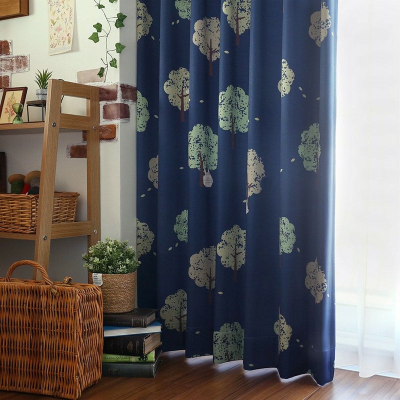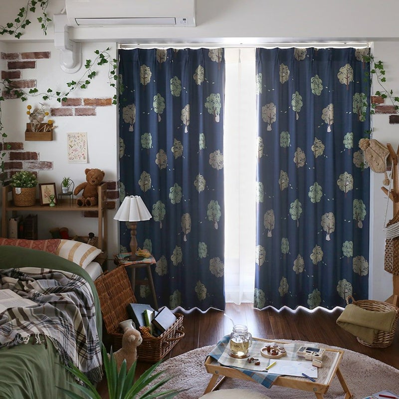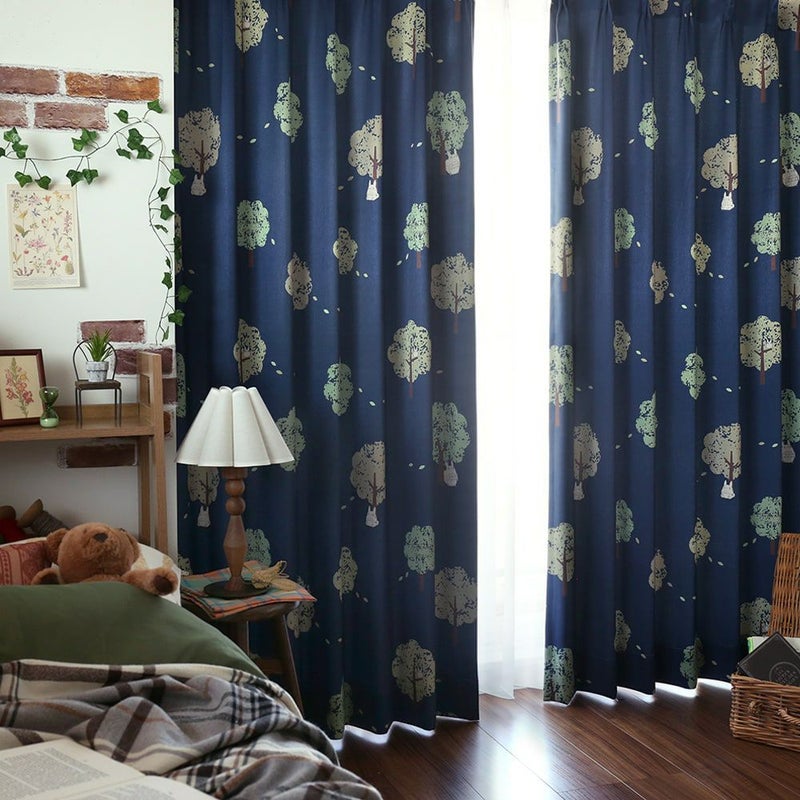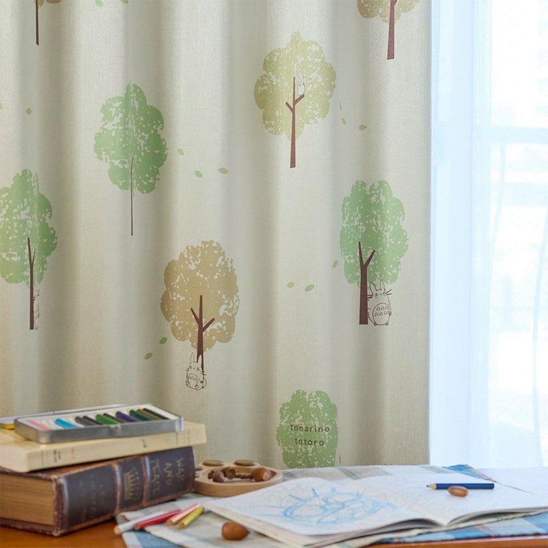 風に吹かれるくすの木。その下ではトトロがちょっとひと休み。そんな物語を感じさせる、遮光カーテンです。窓辺に広がるトトロの世界は、まるで映画の続きをのぞいているよう。見ているだけで、胸が高鳴る1枚です。