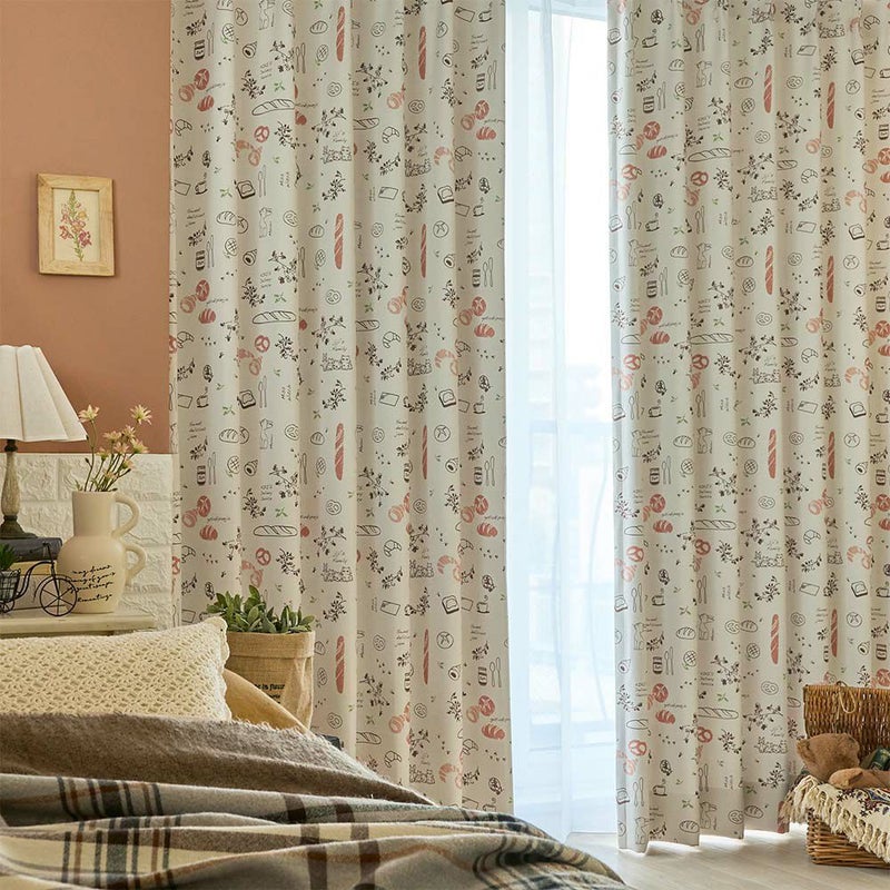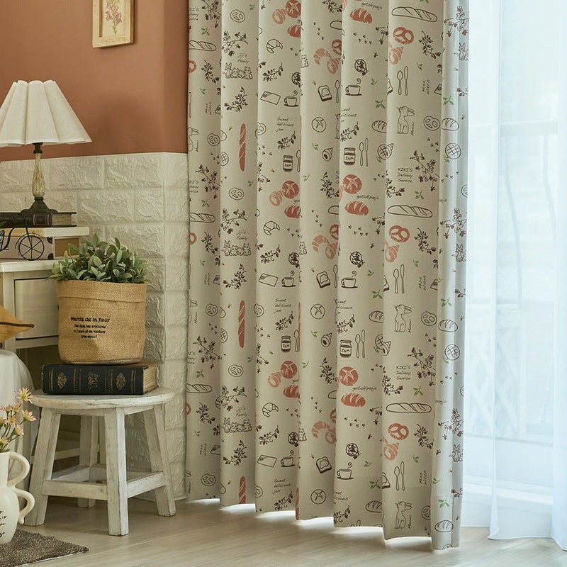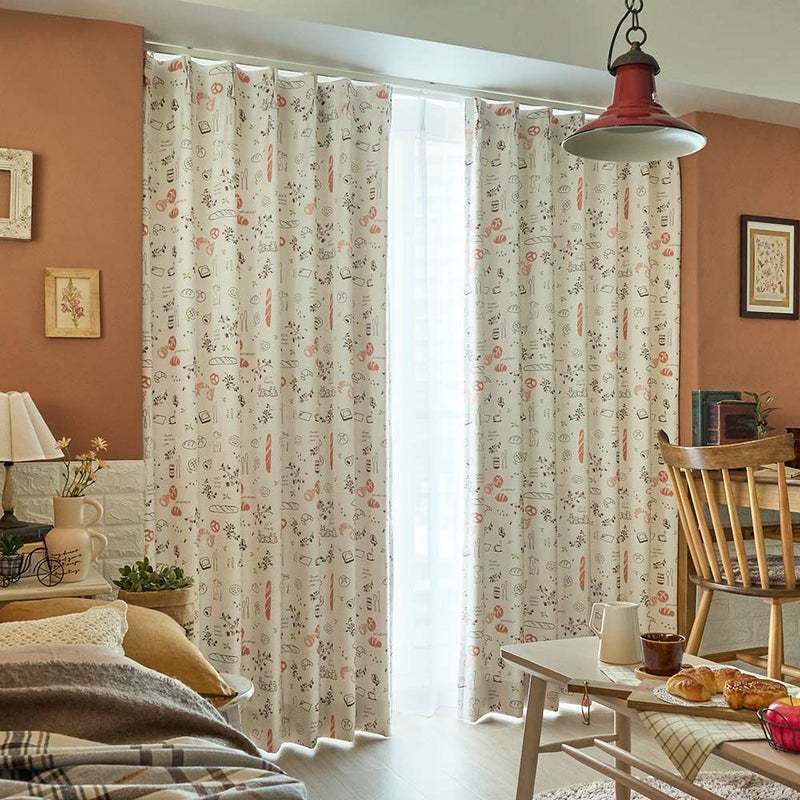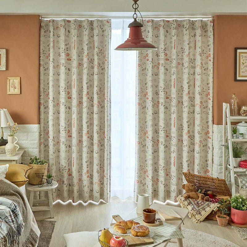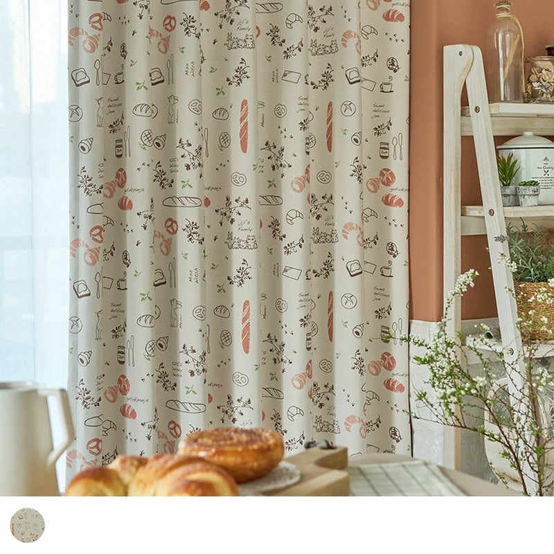 ジブリ映画「魔女の宅急便」に登場するパン屋さんをイメージした遮光カーテン。ふんわりと焼きあがったパンや、ジジたちの姿が可愛らしくデザインされています。まるで憧れのお店に訪れたような、ワクワク・ほっこりとした気分に♪