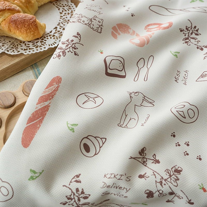 物語の舞台のひとつ「グーチョキパン店」をイメージしたモチーフが大集合!おいしそうに焼きあがったフランスパンやクロワッサン。ジジやジジの子供たちの姿も!さらに作中のシーンを思い出すアイテムもそっと描かれている、ジブリ好きにはたまらない1枚。