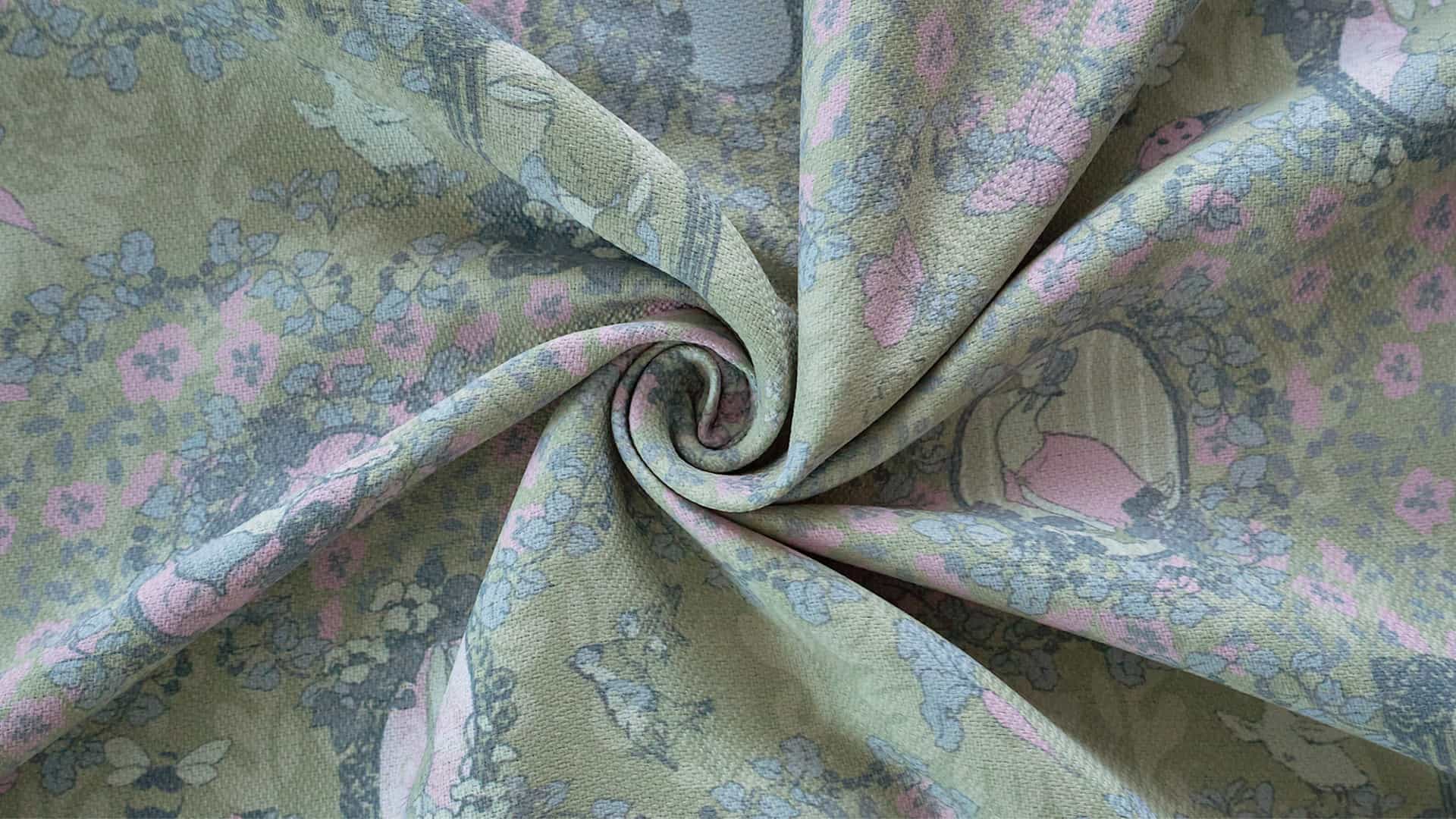 カントリーサイドの自然豊かな庭園の中にいるような花柄カーテン。ピーターラビットや仲間たちが、花々や草木が息づくガーデンで伸びやかに過ごしています。ノスタルジックな世界を思わせるやわらかな庭の景色。慌ただしい毎日にやさしい自然を感じるカーテンです。