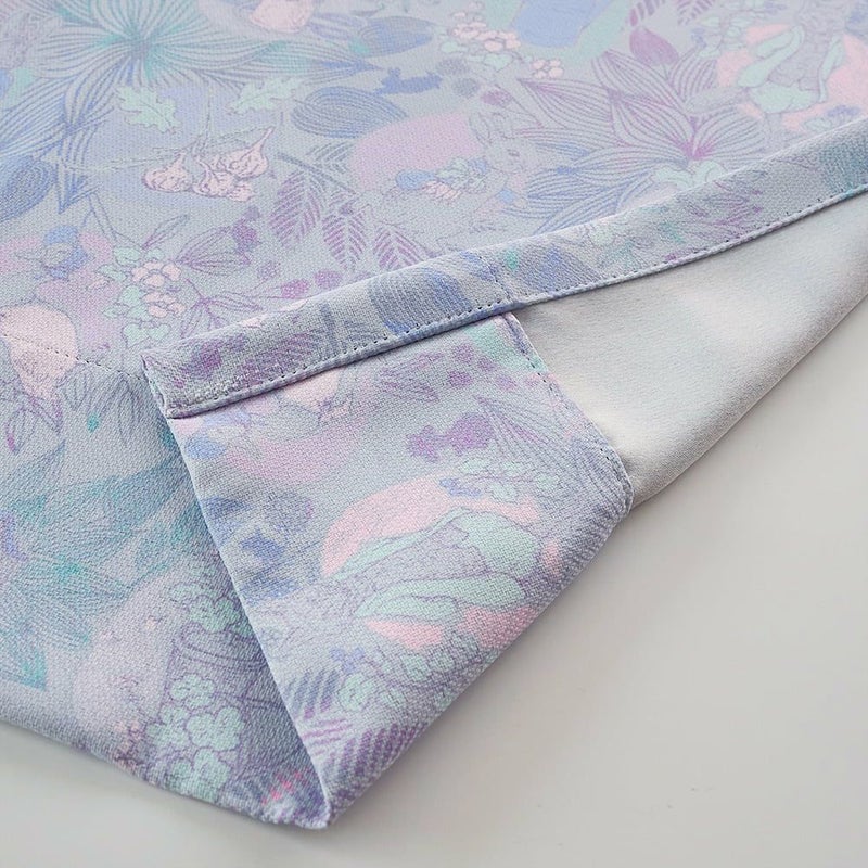 プリントデザインなので、裏面はベーシックな無地仕様です。裾裏は縫代を長くとり、丁寧に縫い込まれています。型崩れしにくく自然なドレープが続く、オーダーカーテンならではの丁寧な縫製です。