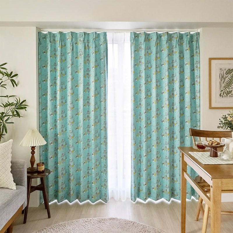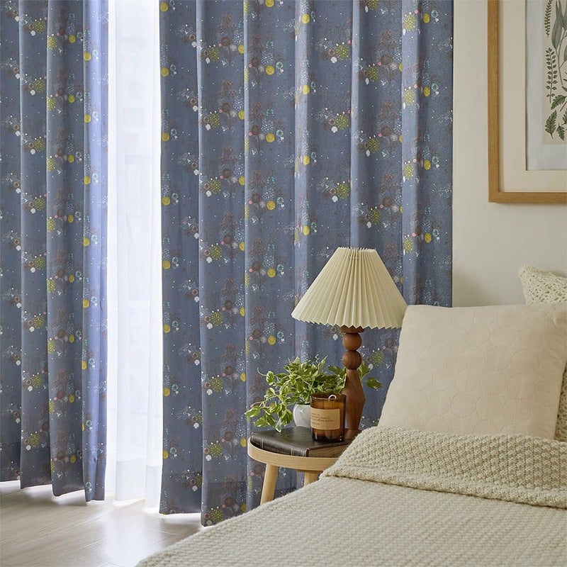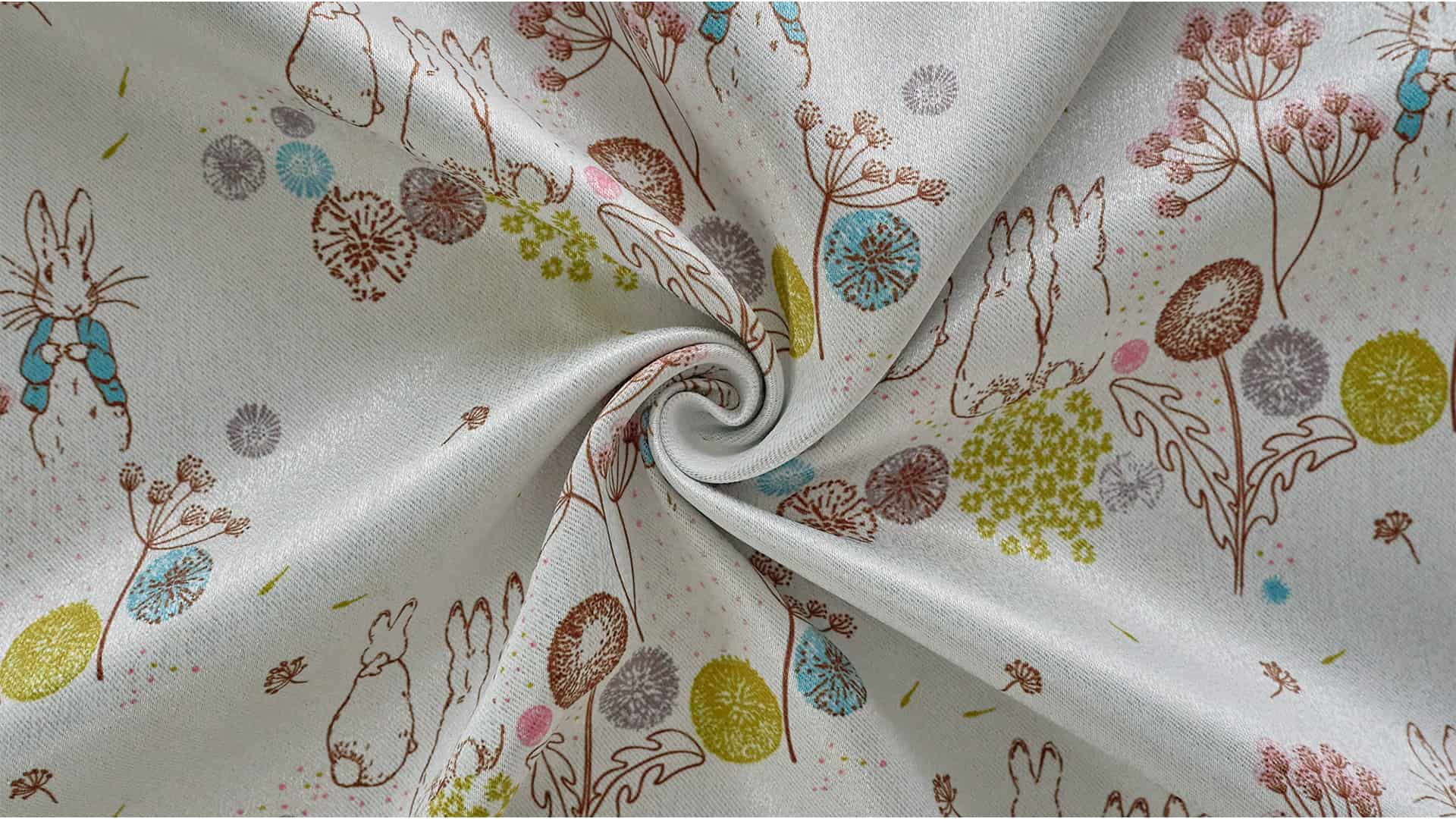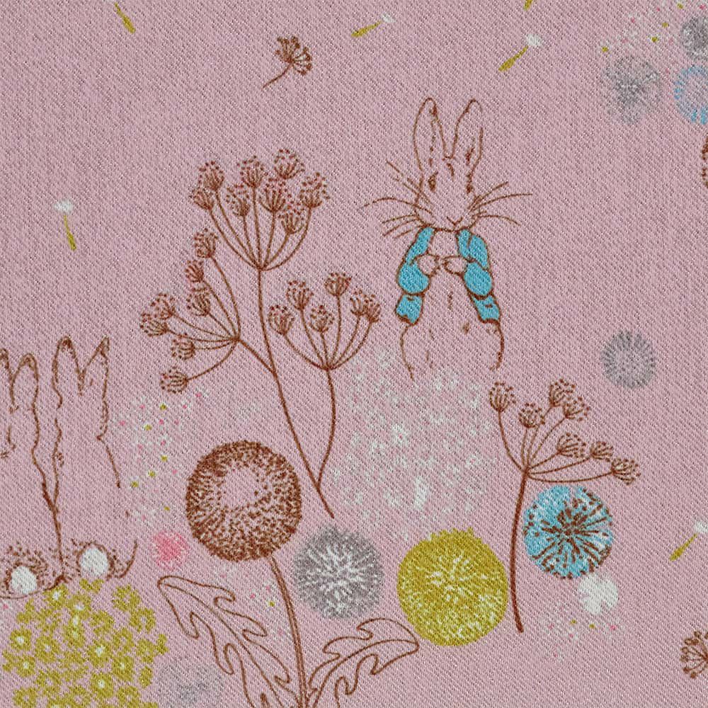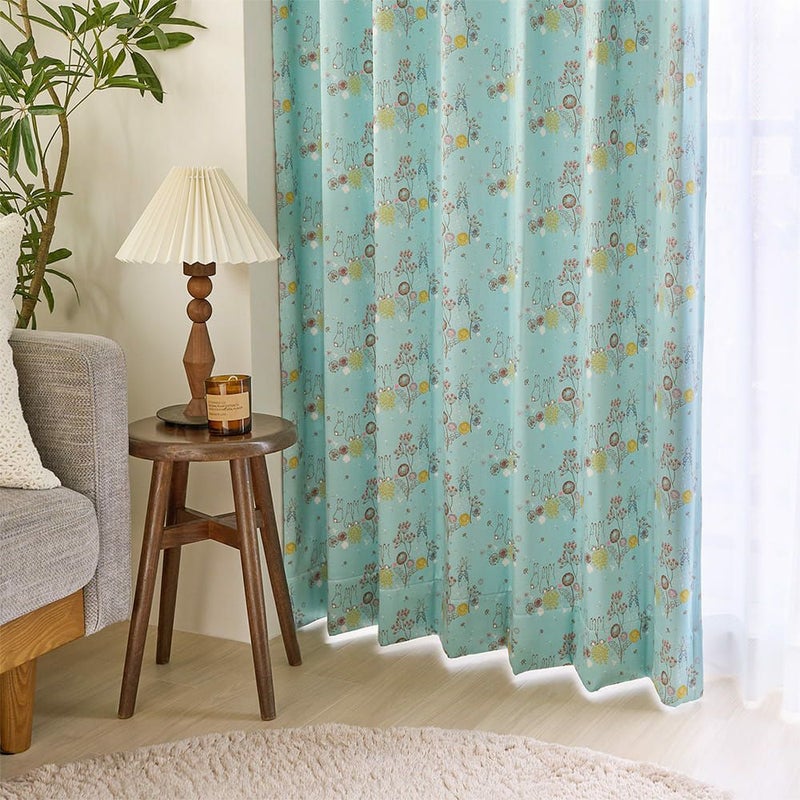 英国の湖水地方の美しい自然。その野原でピーターラビットたちが駆け回り、ふんわり舞うたんぽぽの綿毛たち。そんな物語の中の1ページを切り取ったような、やさしい空気を運んでくれるカーテンです。