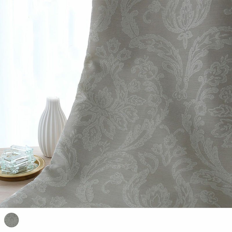 シャビー感のあるペールトーンのカーキに、ふくらみを持たせたダマスク柄をジャガードで表現。主張しすぎず、かつ、控え目すぎない絶妙な立体感が、品格あふれる美しい窓辺を演出します。 -