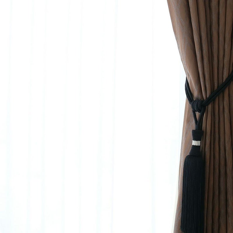 リッチなテキスタイルをさらに引き立てる、華やかな装飾タッセルとのコーディネートもおすすめです。大きな房のついたデザインタッセルでまとめれば、より高級感と優雅な雰囲気が盛り上がります。