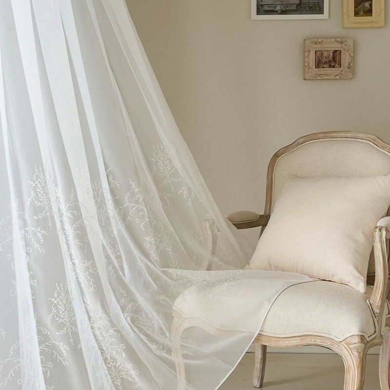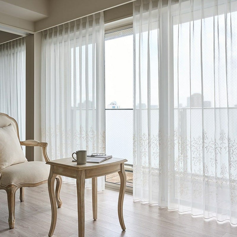 特別なオーダーカーテンで、気品あるシャビーシックな空間を叶えませんか?ヨーロピアンなオーナメント模様のレースカーテンがある窓辺で、日々を優雅で穏やかにし、ゆったりと流れる上質な時間をお楽しみください。