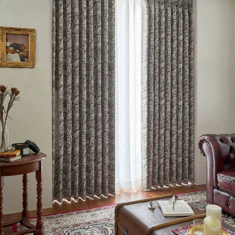 英国的要素のあるホース柄カーテンを取り入れて、古典的でおしゃれなお部屋作りをしてみませんか?ダイナミックで立体感のあるカーテンは、お部屋全体を広々とした開放的なムードを演出します。非日常の時間に酔いしれる、そんな特別なひと時をあなただけに。