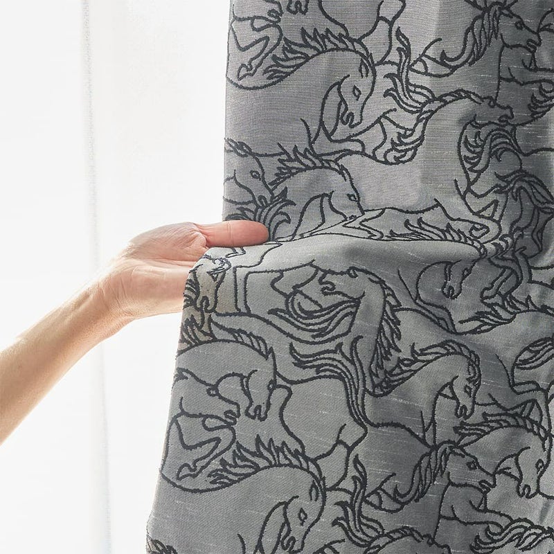 国内有名インテリアメーカー「シンコール」から、美しいカーテンをお届けいたします。躍動感のある個性的なホース柄をジャカードで表現した、アーティスティックなカーテン。ベースの生地にはラメ糸を使用、柄部分はモール糸に使い分けることで、奥行きのある高貴なムードを演出。窓辺にクラシックな装いを纏う、とっておきのオーダーカーテンです。