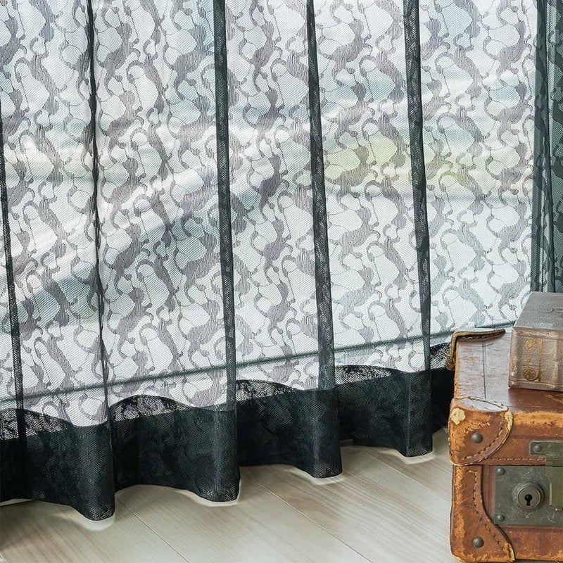 織り柄だからこそ叶う、上質で繊細な印象の黒猫たち。リズミカルに並ぶ黒猫たちの愛らしい姿に、思わず笑みがこぼれそう。日常にちょっとしたユーモアをプラスしたい方にぴったりのレースカーテンです。