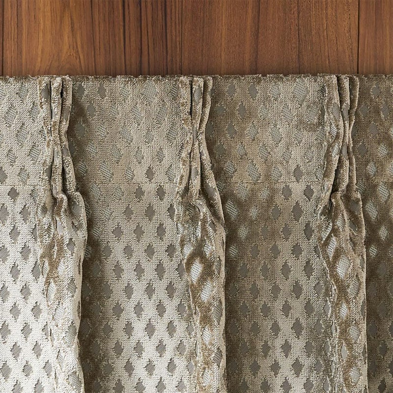 国内有名メーカー「サンゲツ」より、最高級のカーテンをお届け。大胆なダイヤ柄をベルベット生地で表現したブリティッシュモダンなファブリック。歴史あるロンドンの宝石職人が施した、美しいカットを彷彿とさせる繊細で高貴なカーテンです。