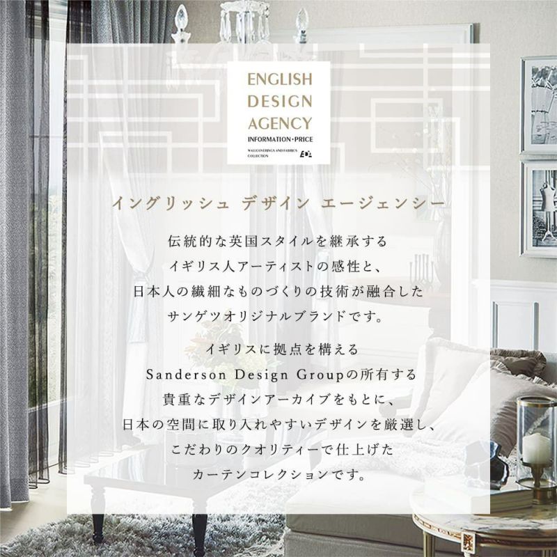 伝統的な英国スタイルを継承するイギリス人アーティストの感性と、日本人の緻密で繊細なものづくりの技術が融合したサンゲツオリジナルブランド「イングリッシュ デザイン エージェンシー」。貴重なアーカイブを元に、こだわりのクオリティで仕上げたカーテン生地のコレクションのひとつです。