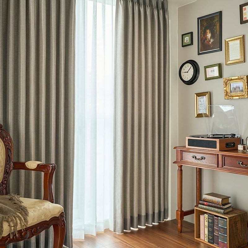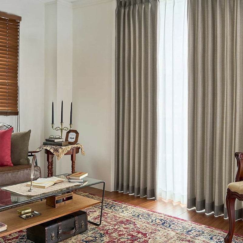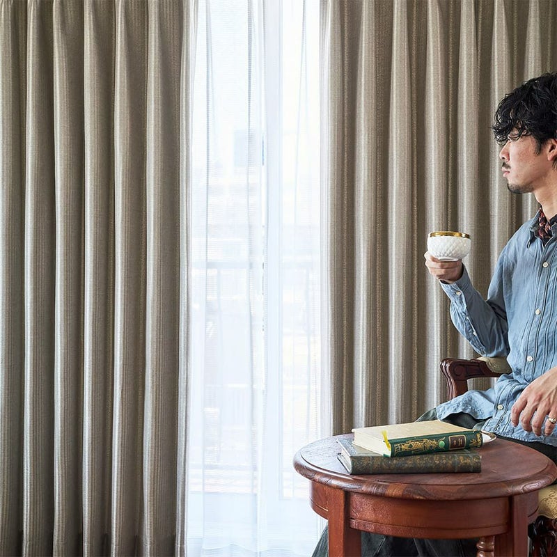 古き良き英国の邸宅や格式高い館を思わせる雰囲気の高級カーテン。繊細なシャドーストライプの表情と艶やかなテクスチャーは、窓辺を上品でリッチな空間に着飾ります。