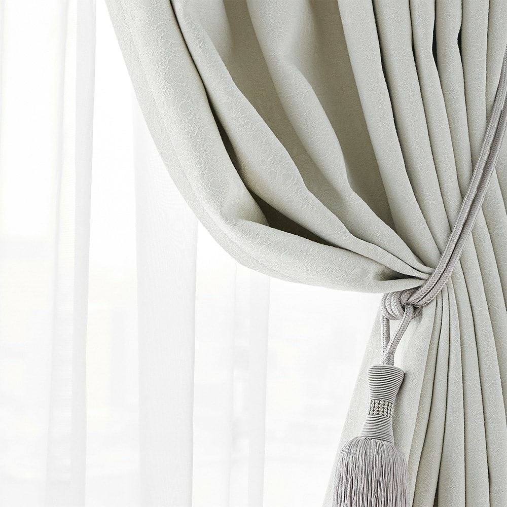 ラグジュアリーなタッセルを組み合わせることで、より洗練された雰囲気に。たっぷりとドレープを作ってまとめることで、陰影が際立ち、生地の立体感をより一層お楽しみいただけます。