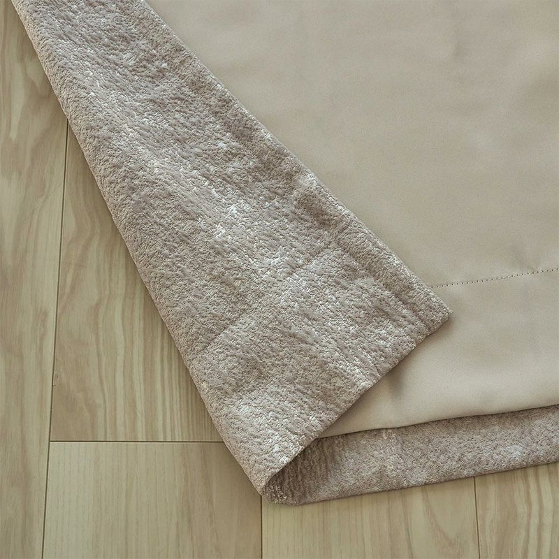 品質を支える「遮光裏地つき」。1級遮光の機能をしっかりと保ちながら、お気に入りの表地を日差しや外気から守る役割も果たします。見えない部分でありながら、カーテン全体の完成度をしっかりと高める存在。色はどんな空間にも馴染む上品なベージュで統一しました。機能性と美しさ、どちらも妥協しないオーダーカーテンのこだわりを。