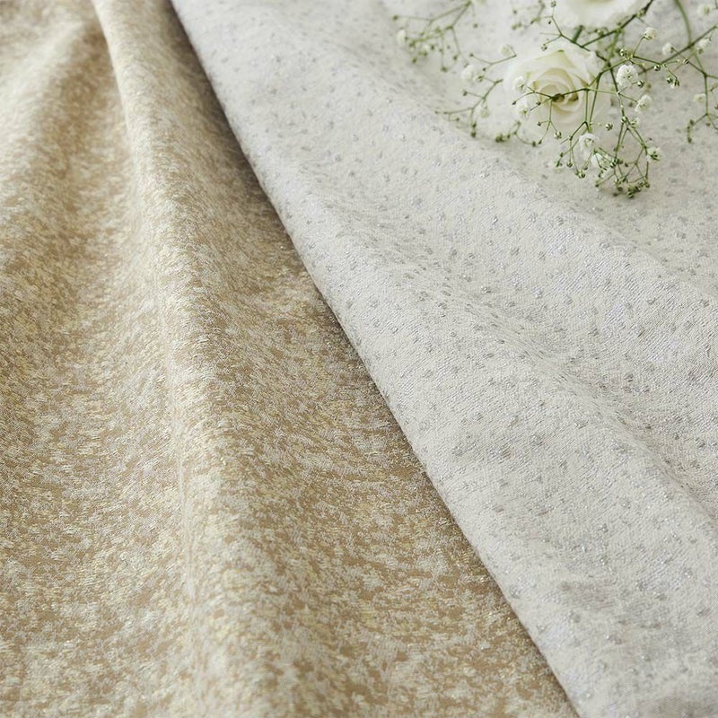 まるで砂糖を散りばめたような、甘く繊細な煌めきにうっとりするジャガードカーテン<ルミシュガー>。ラメ糸が織りなす輝きを放つ生地は、やわらかな光を受けて複雑で立体的な表情を生み出し、窓辺を幻想的に彩ります。暮らしにときめきとエレガンスをもたらす、特別な一枚。