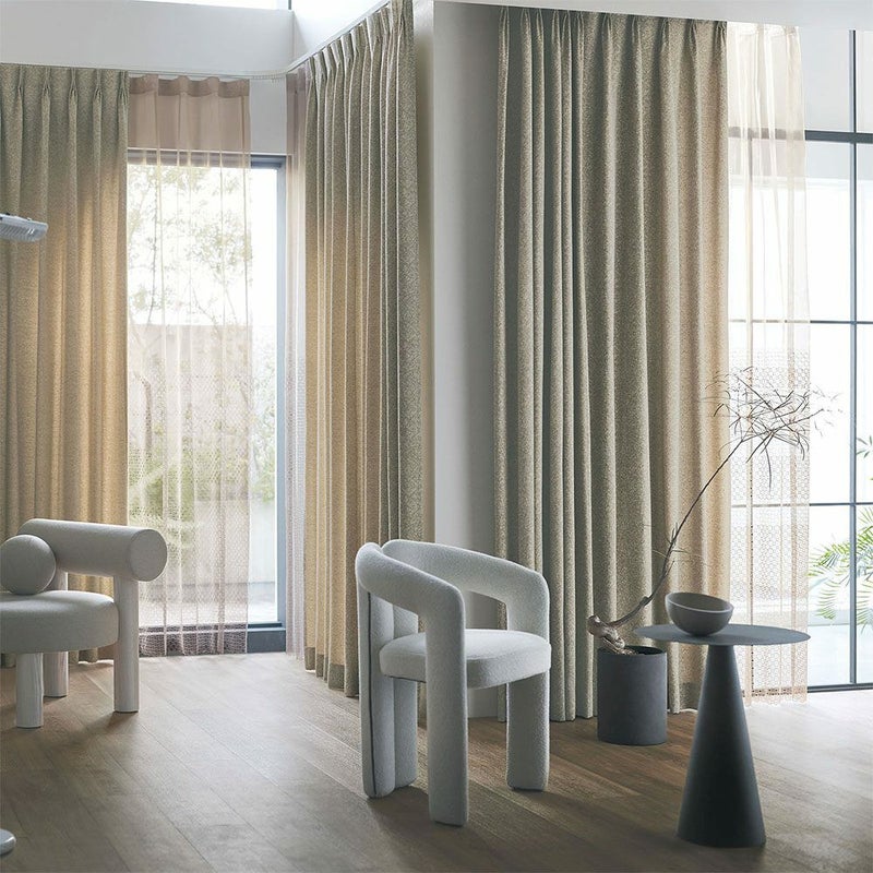 非遮光カーテンならではの、優しい光と質感のハーモニーが、空間に穏やかなニュアンスを添えます。甘さと上品さが絶妙に溶け合う佇まいが心地よく、ふと窓辺を見渡すと気持ちが華やぐ。<ルミシュガー>は、そんな空間づくりを叶えます。日常にそっと寄り添う、ほんの少しの甘い贅沢を。