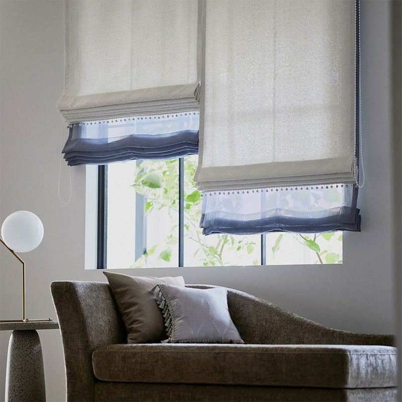 カーテンと同じ生地で仕立てるシェードは、空間に統一感をもたらし、洗練された雰囲気を演出。ヒダのないフラットな仕上がりは、小窓や腰窓をすっきりと見せ、ソファや棚を窓下に置いても空間を有効に使えるのも嬉しいポイント。1cm単位のサイズオーダーが可能なので、どんな窓にも寄り添い、美しい仕立てが叶います。ご希望の方はお問合せください。