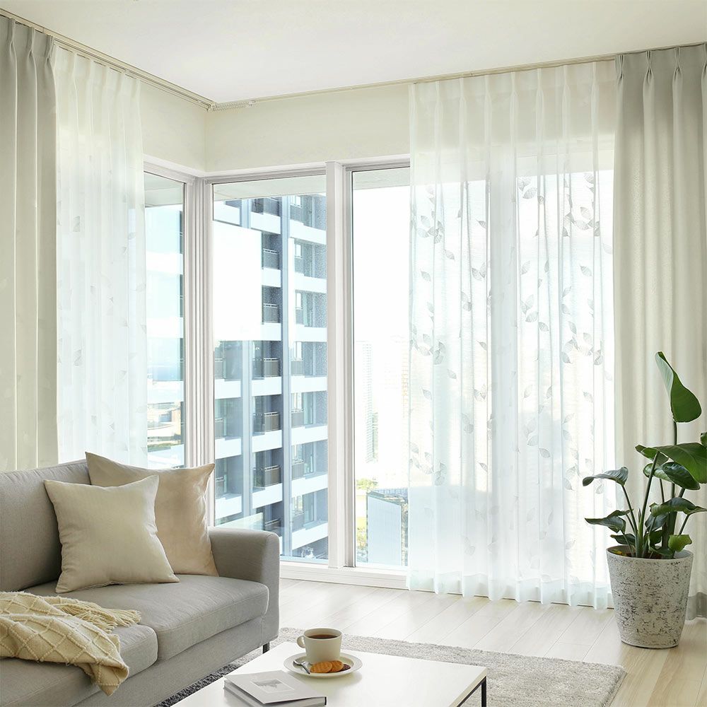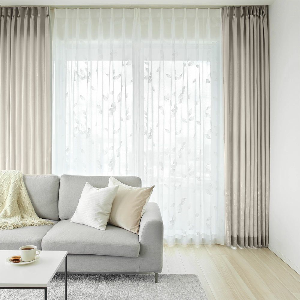 【撮影コーディネート】 カーテン <ペイザージュ~ホワイトグレー~>/2倍ヒダ(3つ山)