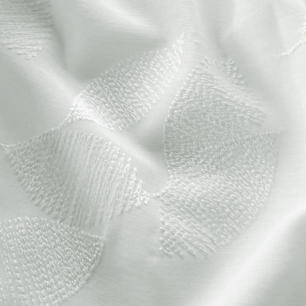 軽やかなエンブロイダリーレースからさし込む、美しい陽射し。ふわりと舞うリーフモチーフ越しの陽射しはまるで、木漏れ日の中にいるような清々しさです。