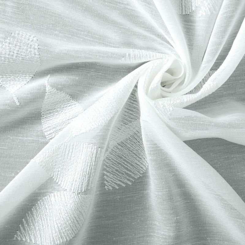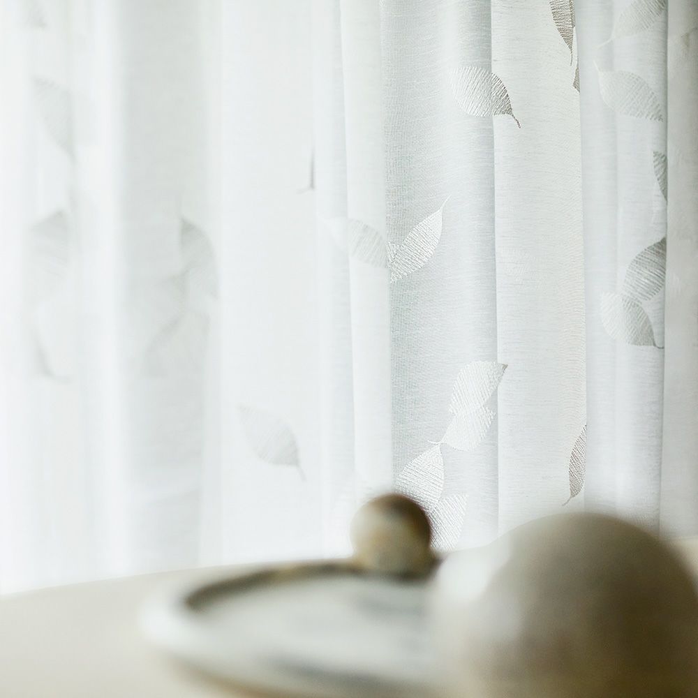 「ペイサージュ」とは、フランス語で風景という意味。まるで空から木の葉が舞い落ちるような、美しい風景をレースカーテンに落とし込みました。 -