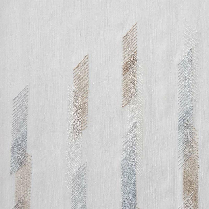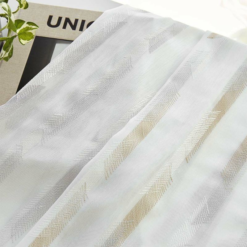 グラデーションのように、刺繍の密度を変化させて描いた、繊細なデザイン。折り重なるようにストライプを配置させ、窓越しに美しい陰影を映し出します。