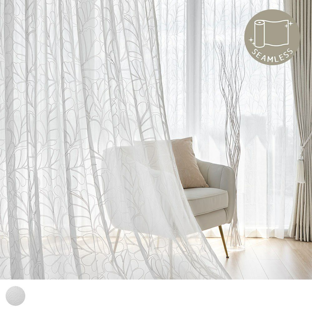 ほどよい透け感のボイル地に、贅沢に施されたボタニカル柄の刺繍を堪能できるレースカーテン<クレアボタニカ>。継ぎ目のない広窓仕様は刺繍の美しさを余すことなく引き立て、エレガントで上質な雰囲気が窓一面に広がります。視覚だけでなく心まで満たされるようなひとときを、オーダーカーテンで叶えませんか。