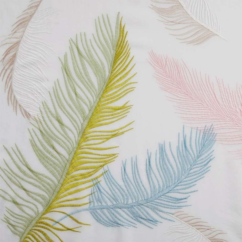 サラリとした軽やかな手触りが、羽根のデザインとピッタリ。カラフルな羽根がより美しく引き立ちます。