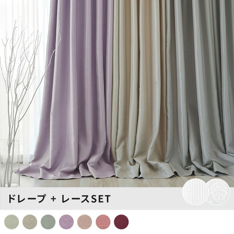 ドレープカーテンとレースカーテンをセットでお届け!別々に購入する手間がなく、オーダーサイズでお届けするので、安心です。