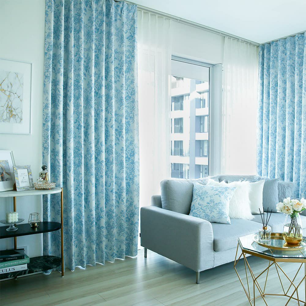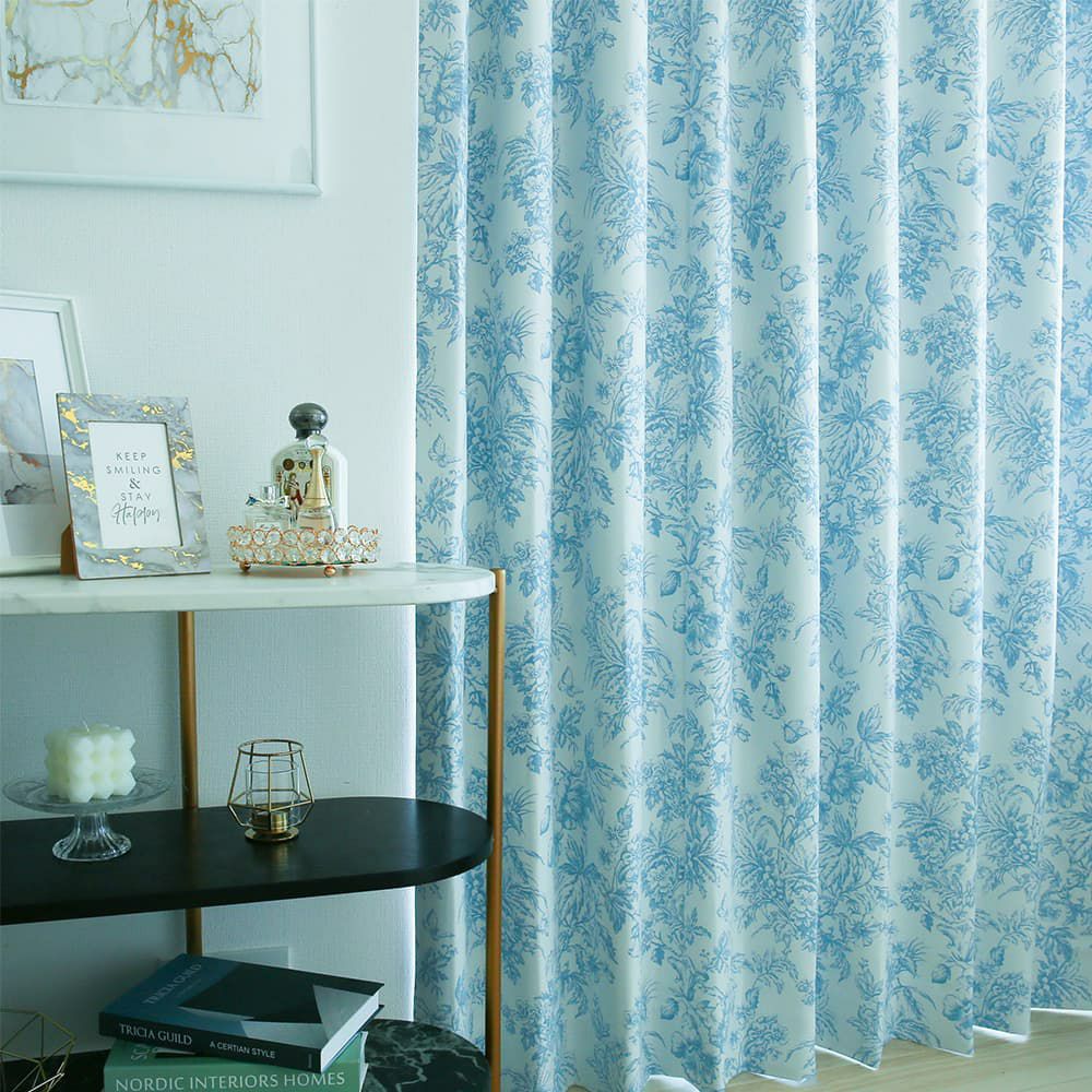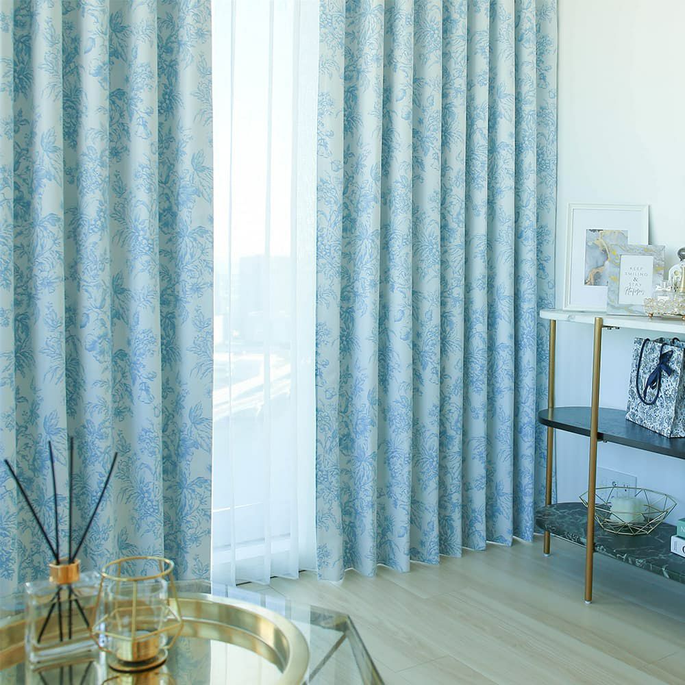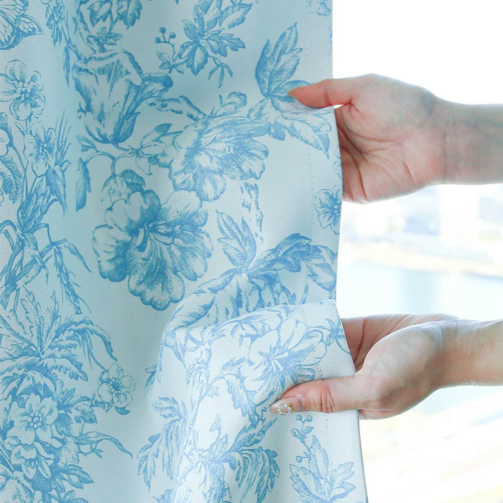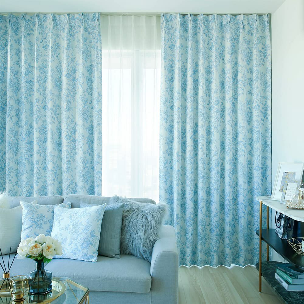 トワルドジュイ「Toile de Jouy」は18世紀に誕生した、生き生きとした人や動物、エレガントで華やかな草花などが描かれたデザインです。世界的有名ハイブランドで大ヒットし、バッグやワンピースなどでも見かけるようになった大人気のデザインを、カーテンにデザインしました。