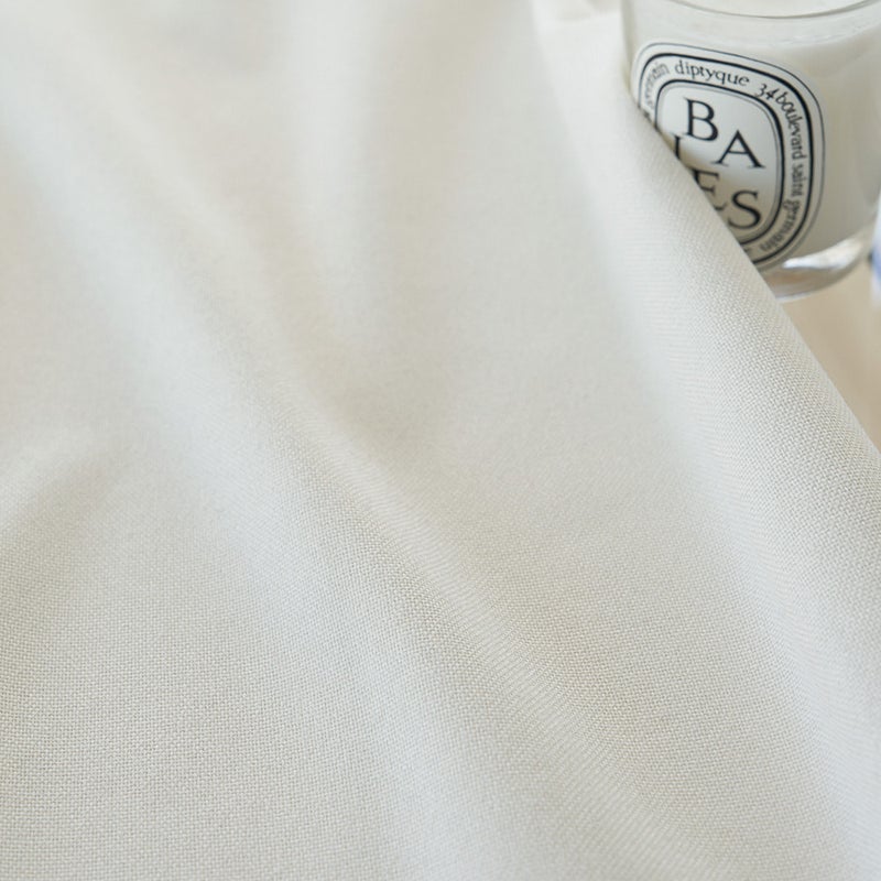 シンプルなのにどこか奥行きがあるのは、この生地だからこそ。織りの表情を感じるマットな質感でありながら、光があたると上品な光沢がそっと輝きます。日常に静かな心地よさをもたらす、大人のためのホワイトカーテンです。