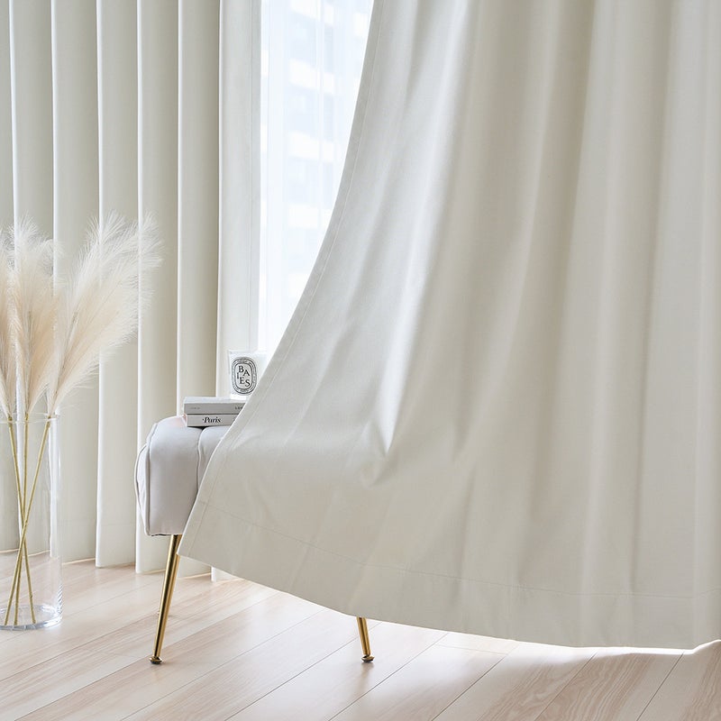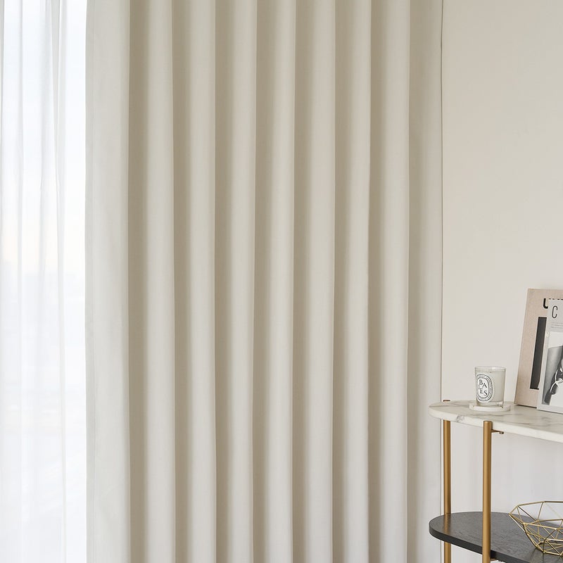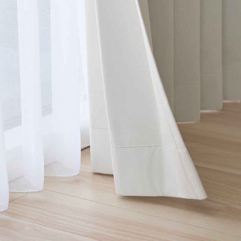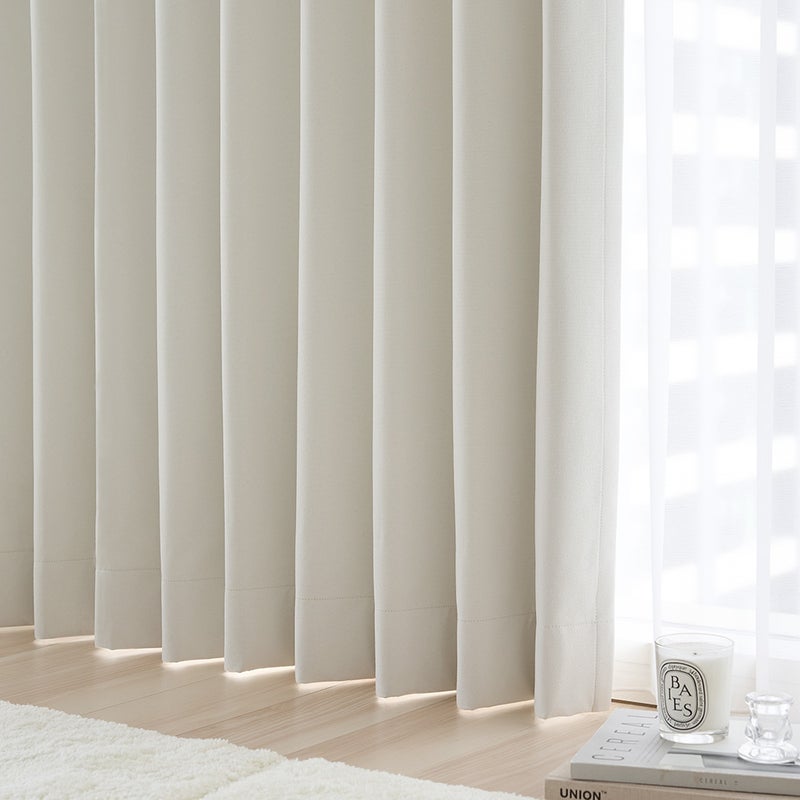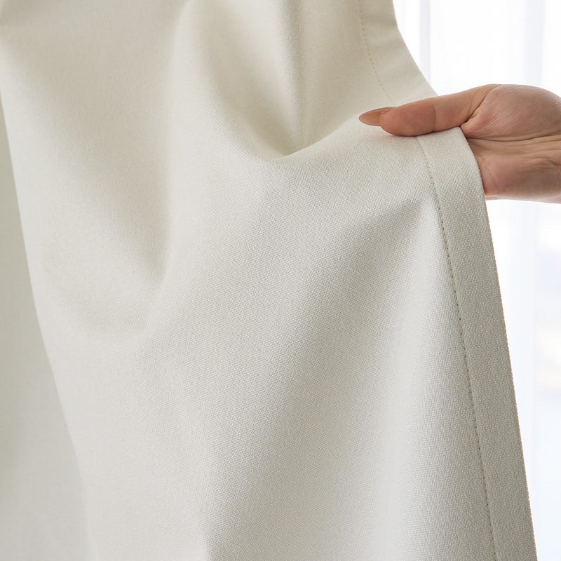純白でありながら、どこか優しい。ほんのりと温かみを感じる、柔らかなホワイトカラーが魅力です。やわらかな質感と、ほんのり感じる織りの表情もたまらない。さらに、完全遮光・遮熱・保温・ウォッシャブル、ヒダの形を綺麗に整える形状記憶加工付きという、欲しい機能をすべて備えた優秀さ。シンプルだけど上質なホワイトインテリアを叶えたい方に、心からおすすめできる1枚です。 -
