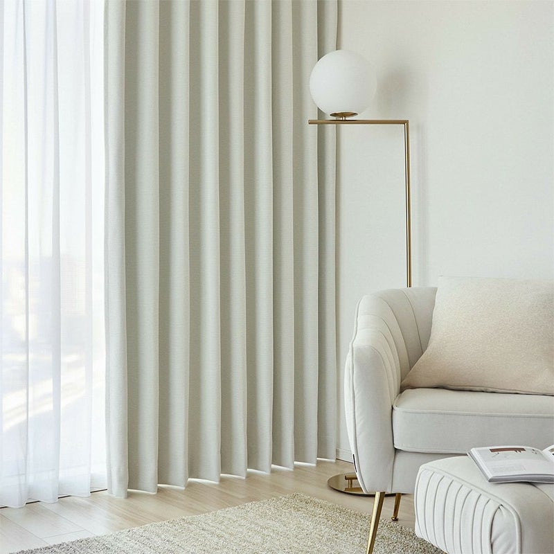 シンプルだけど上質なホワイトインテリア。そんな空間にふさわしい遮光カーテン<ソフトベース>が登場いたしました。見た目からも伝わる、ふっくらとした表情がたまりません。まったくの無地ではない、素材感を感じられる生地も魅力のひとつ。さらには、遮光1級・遮熱・保温・防炎・洗濯可、そしてヒダの形を綺麗に整える形状記憶を施した、機能も優秀な1枚なのです。シンプルさと上質さ、そして機能も欲張りたい大人女性に、心からおすすめできる遮光カーテンです。