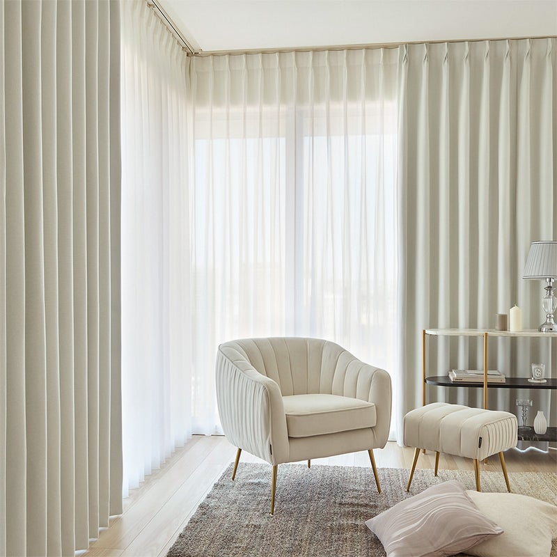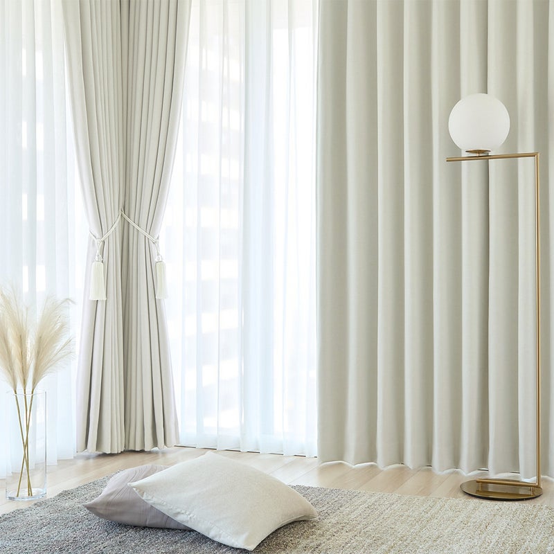 セットのレースにセレクトしたのは、遮光カーテンと相性の良い遮像レースカーテン<ミルクベール>をご用意。なめらかで柔らかな手触りが心地よく、女性らしいしなやかな表情をプラスしながら、外の視線はしっかりとガードします。日中のプライバシーが気になる一人暮らしの女性や、通りに面したお部屋にもぴったり。ゆったりと流れる美しいシルエットと、触れるたびに思わず頬が緩むようなとろける質感。毎日少しだけ特別な気分になれる、上質で優しい印象のカーテンセットを、ぜひお楽しみください。