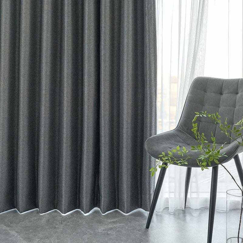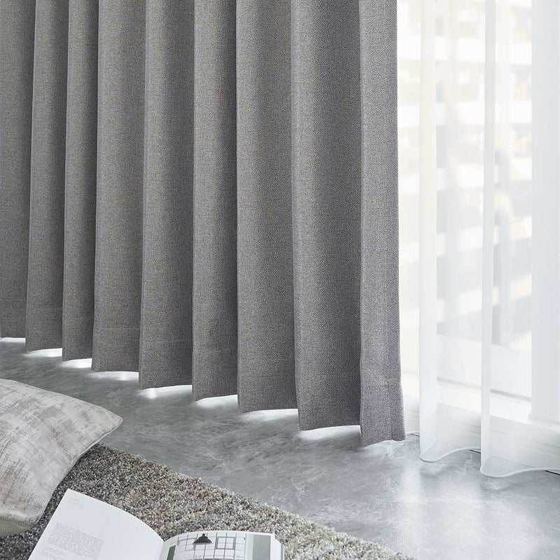 強い日差しをしっかりと遮り、心地よいプライベート空間をつくる1級遮光カーテン。ざっくりファブリックでは珍しい、裏地が付いていないにも関わらず、表地の素材感を損なうことなく機能性も兼ね備えた優秀な一枚。朝目覚める時も、夜眠りにつく時も、眩しい光に邪魔されないため寝室の窓にも最適なカーテンです。