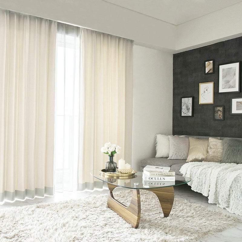 細かな織りでストライプのようなラインを感じさせる生地。シンプルでもこだわりを詰め込んだお洒落なカーテンで、海外モダンなインテリアに導く上品なカーテンをご紹介。