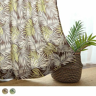 カラー:ブラウン 麻混のナチュラル感のある生地にヤシの葉柄をプリントした、ヴィンテージ感漂うドレープカーテン。ゆったりした空気感が魅力です。