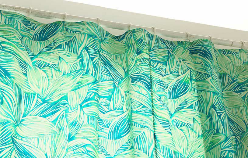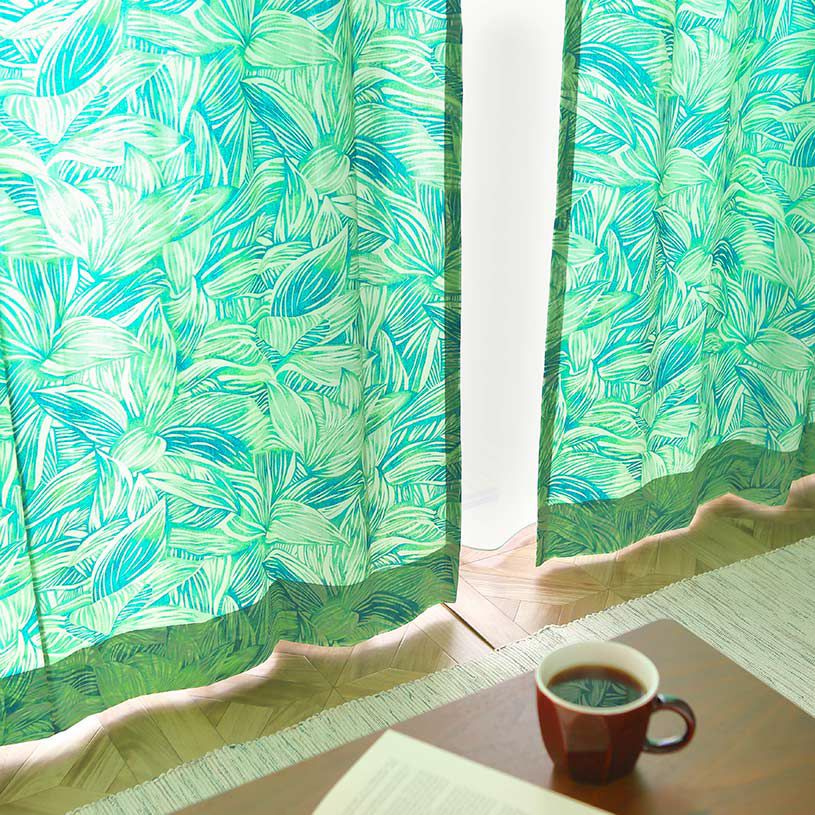 カーテンいっぱいにデザインされたティーリーフ