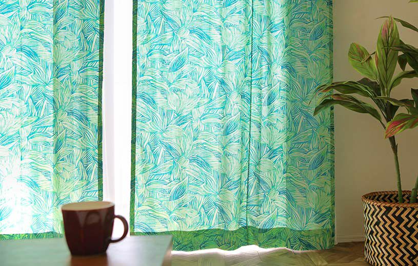 綿100%のカーテンは、木漏れ日のような優しい透け感が特徴ですが