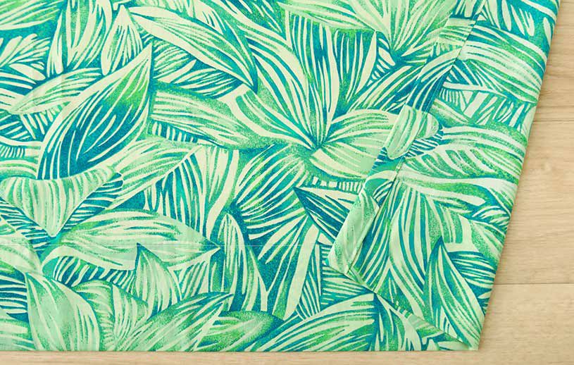 幅広く愛されるティーリーフと、現地らしい色使いは、ハワイアンリゾートインテリアにぴったり!
